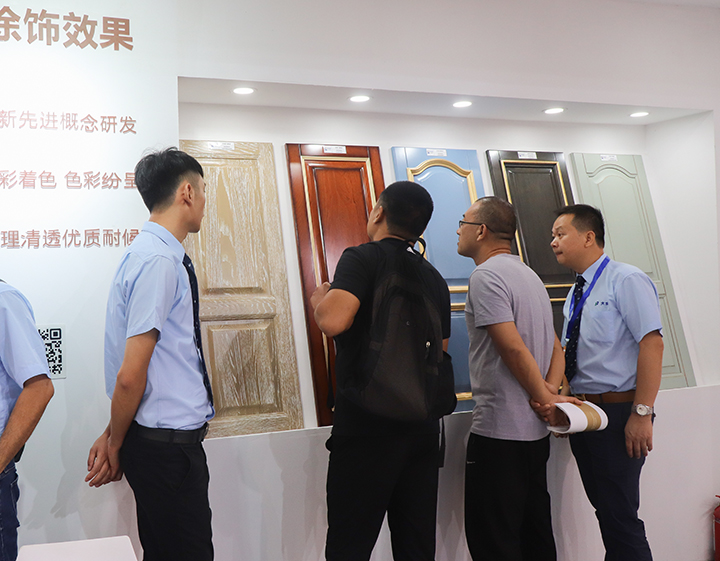 展會中,大寶漆展示“水性單組份”、“水性雙組份”、“UV涂裝”、“科技木皮涂裝”、“櫥柜涂飾效果”和“水性工業漆”等大型展示色板,其中,大寶水性涂料的色板色澤豐滿度、高抗刮、耐黃變等性能吸引了許多客戶的眼球,紛紛詢問現場工作人員關于水性涂料的性能及施工要求,表示出強烈的合作意愿,同時,很多家具廠客戶也提出了產線油改水的想法和需求。