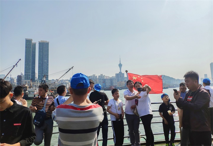 第一站,大家坐郵輪參觀港珠澳大橋。港珠澳大橋是中國(guó)境內(nèi)一座連接中國(guó)香港、廣東珠海和中國(guó)澳門的橋隧工程,位于中國(guó)廣東省珠江口伶仃洋區(qū)域內(nèi),因其超大的建筑規(guī)模、空前的施工難度以及頂尖的建造技術(shù)而聞名世界。在這里,大家能欣賞港珠澳大橋帶來(lái)的震撼視覺(jué)盛宴,感受世紀(jì)工程的宏偉。