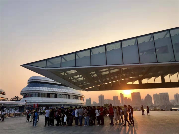在餐廳用餐后,大家便前往珠海日月貝歌劇院。日月貝歌劇院是中國(guó)唯一建設(shè)在海島上的歌劇院,坐落于珠海情侶路野貍島海濱。大劇院建筑方案的創(chuàng)作構(gòu)思源于大海,用地總體布局形似從海中升起的美麗魚鰭烘托著純凈的雙貝造型,形成“珠生于貝,貝生于?!钡囊饩?。在這里,大家或在拍照留念,或坐在陰涼處欣賞美景。