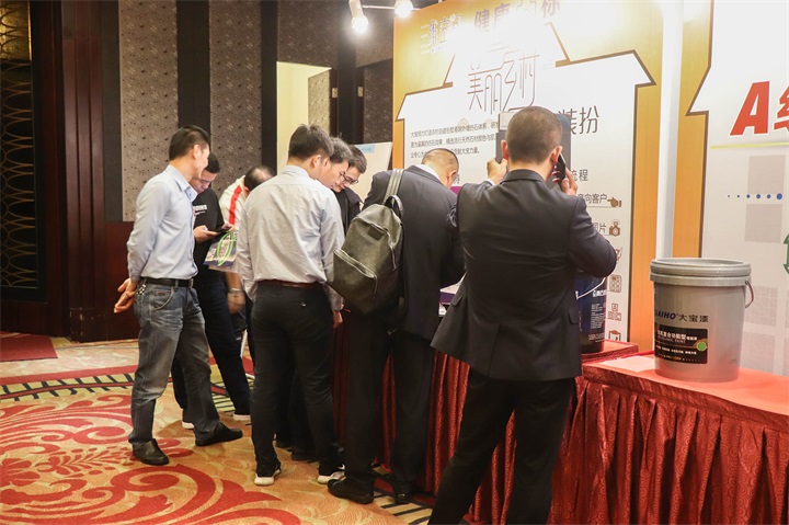 企劃部課長(zhǎng)戴文豐作《2020終端“蛻變”4.0》主題分享。他從市場(chǎng)機(jī)遇與市場(chǎng)方向入手,明確公司2020年終端店面發(fā)力方向:仿石漆店和色彩店。他與經(jīng)銷商們講解了2020年大寶店面政策和終端引流方式。