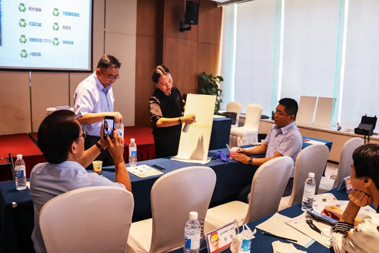 大寶培訓學校夏秀麗老師,有系統地介紹2021年新品上市的主推產品物性,讓大家對大寶抗病毒全效墻面漆、大寶絲絨蛋殼光墻面漆高倍安負離子墻面漆..等產品有了更加深入、透徹的認識。期間與現場的經銷商客戶穿插的互動環節,把會議氛圍帶起了一個又一個高潮。