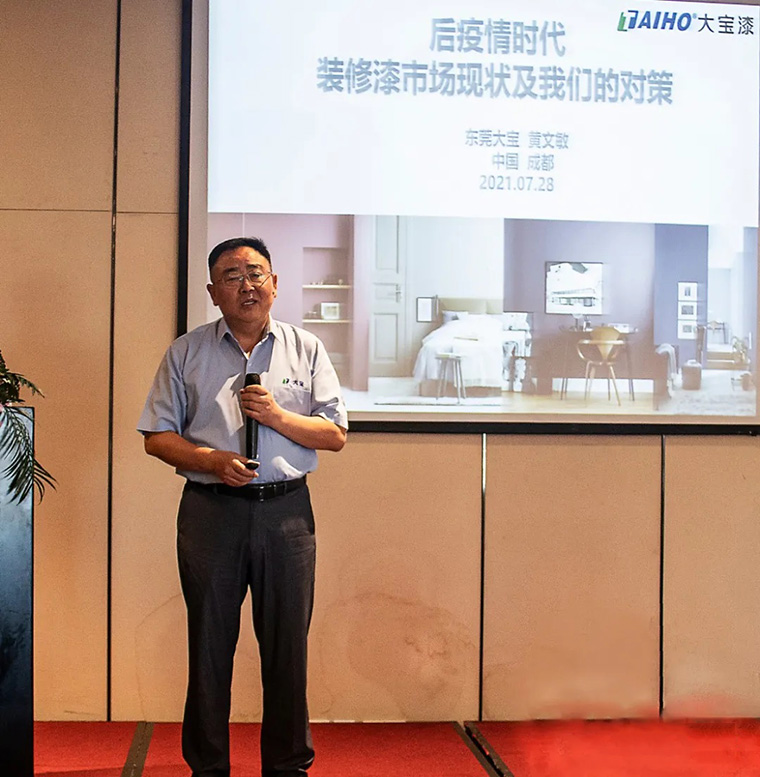 7月28日,“2021年大寶漆‘鋅技術 新產品 心服務’推廣季·成都站”在成都市新津區舉行。經銷事業部副總經理葉子琛在會議開場致辭中用『浴火重生』四字形容成都辦事處的艱辛,大寶漆成都辦事處于2020年3月成立,面對疫情未止、經濟放緩、原材料大漲等迅猛的國際局勢,成都辦截止至今業績逆勢增長19.08%。葉副總表示:業績達成率為45.2%!感恩每位合作伙伴的支持和信任,更期望在這充滿不確定性的變局里,與大家并肩前行、共克時堅,攜手共創新征程、新未來!