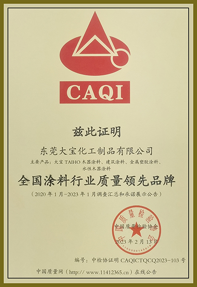 “提振消費信心”,為推動高質量發展提供動力。一年一度的“3·15” 消費者權益日來臨之際,大寶漆憑借過硬的產品和服務質量,再次榮獲中國質量檢驗協會頒發的“全國質量檢驗穩定合格產品”、“全國涂料行業質量領先企業”、“全國涂料行業質量領先品牌”多項權威認證。