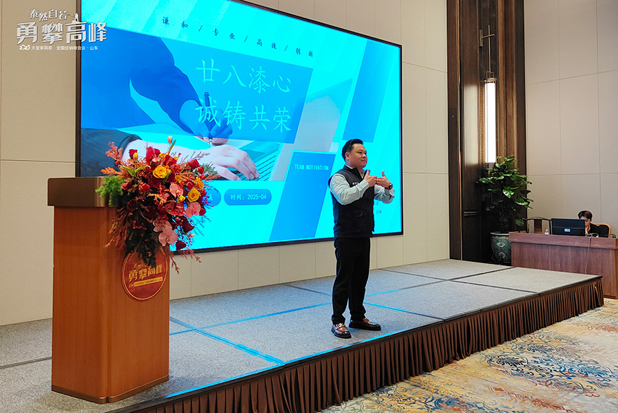 經(jīng)銷事業(yè)部副總經(jīng)理葉子琛在開場致辭中指出,當下市場如同風云驟變、波濤洶涌,唯有保持“泰然自若”的心態(tài),方能穩(wěn)中求進、應變致勝。“勇攀高峰”不僅是一句口號,更是一種從容進取、不懼挑戰(zhàn)的精神指引。