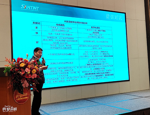 緊隨其后,三華科技吳總以數(shù)字化調(diào)色系統(tǒng)展示色彩科技的力量,以AI與數(shù)據(jù)精確掌控個性化需求,為家具漆調(diào)色系統(tǒng)賦予更多可能。