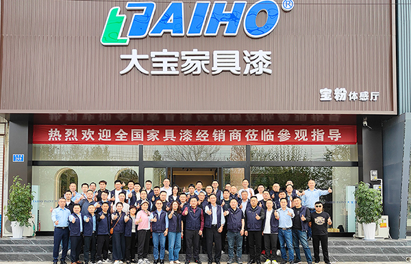 作為本次經(jīng)銷商大會的壓軸行程,與會嘉賓在午宴后前往山東大寶家具漆服務中心深度考察。步入展廳,極具現(xiàn)代感的色板陣列即刻映入眼簾—木器漆呈現(xiàn)天然肌理之美,金屬涂層閃耀科技光澤,塑膠與玻瓶的表面處理更突破傳統(tǒng)工藝邊界。