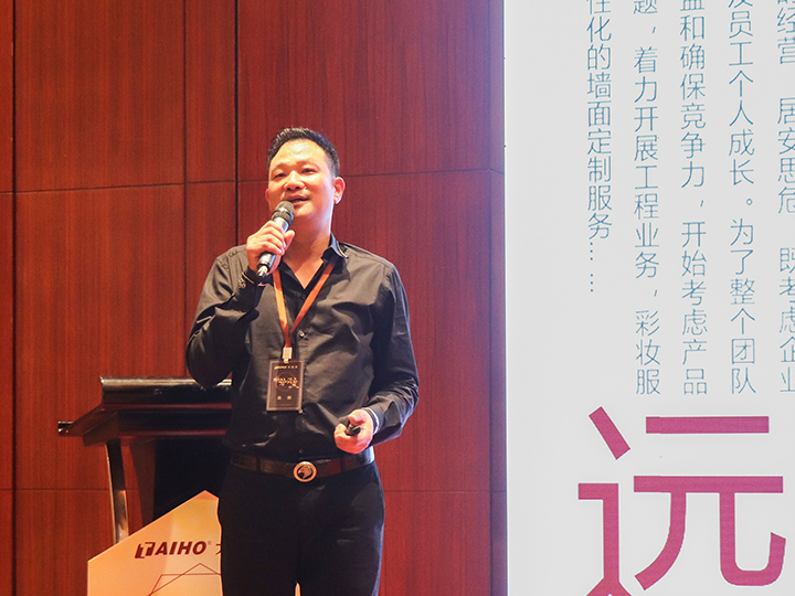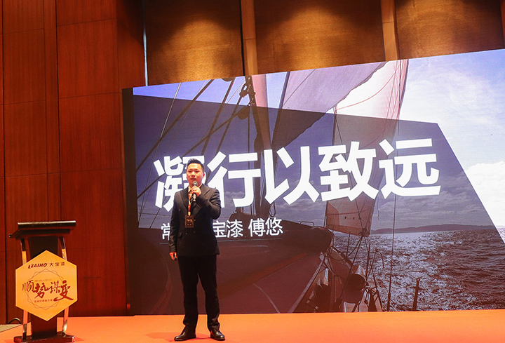 隨后,家裝事業(yè)部經(jīng)理黃文敏作家裝漆總結(jié)報告。他通過成功經(jīng)營案例、大寶漆2019年市場布局為經(jīng)銷商加油打氣。他指出,公司將通過內(nèi)部整合、外部資源運用,和經(jīng)銷商協(xié)同謀贏,再創(chuàng)佳績。