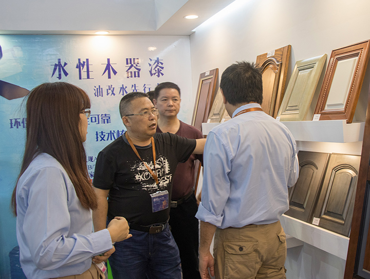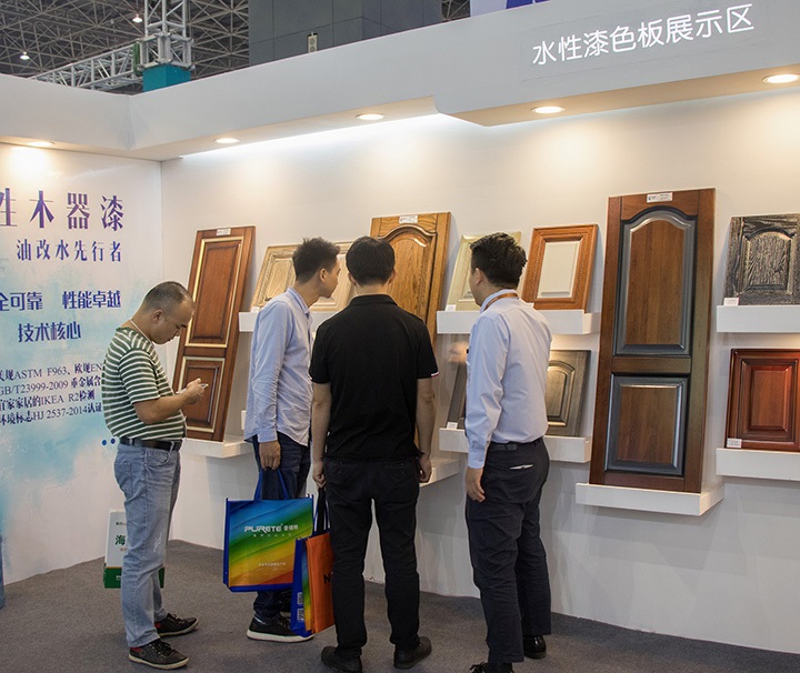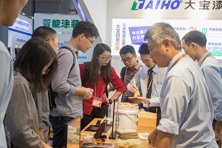 針對整個行業的環保轉型需求,大寶漆一直致力于推動環保涂裝。其中,大寶漆展示的水性著色劑具著色與防脹筋效果、簡化流程,無需使用素材處理劑、涂膜通透性優異等,可極大的滿足家具廠復古簡約產品的涂裝需求。該產品的涂膜厚度達到納米級別,可與國際頂尖化工集團PPG、阿克蘇諾貝爾等的產品比美。在展會上該產品一度成為觀展商關注咨詢的焦點。