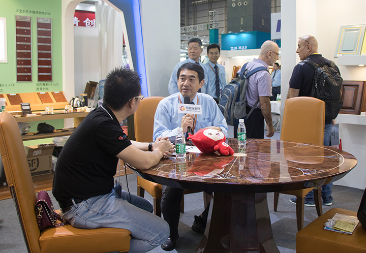 大寶漆堅持“專業、創新”,不斷推出新產品、新工藝和優化整體涂裝解決方案,不僅贏得廣大家具客戶的認可和信賴,還得到業內媒體的關注。慧聰涂料網、南方衛視《名優博覽》等行業媒體記者紛紛趕來。東莞大寶化工直銷事業部張正賢總經理、業務部周志鴻副總經理在展會現場接受了采訪,為媒體記者深入解讀了大寶家具漆和 “油改水” 環保涂裝的發展趨勢。