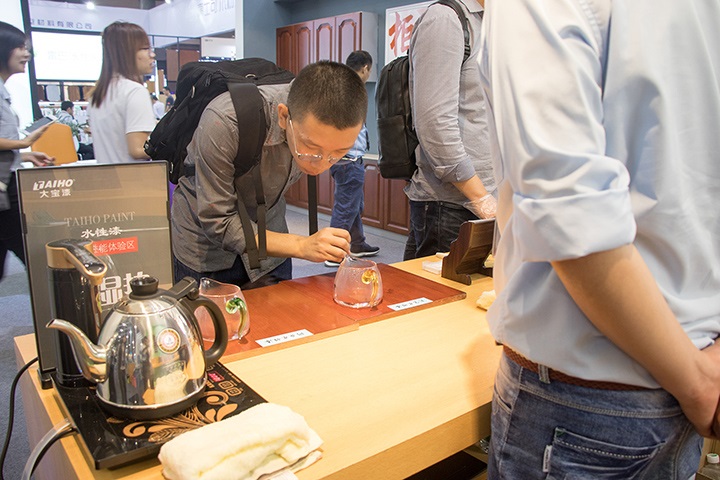 為讓觀展商更全面直觀了解大寶水性涂料,在展位上大寶漆設有水性漆產品體驗區,通過聞氣味、擦拭、耐高溫測試等讓觀展商親自體驗產品性能。優異的產品表現獲得參與人員的高度評價。