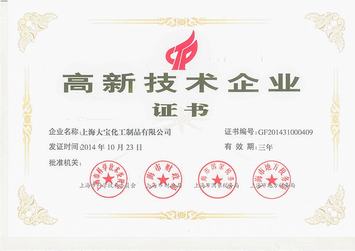 上海大寶在如此外在壓力下,捷報不斷。為了滿足大寶漆“精益求精,專業服務,致力創新,持續改善”的宗旨,上海大寶于2011年首次申請并通過了“上海市高新技術企業”,并于2017年10月成為上海市第一批公示的高新技術企業,這是上海大寶繼2011年被認定為高新技術企業后第三次順利通過認定;2017年11月完成區企業技術中心復核工作;此外,也順利獲得“十環認證”證書。經過上海大寶同仁的共同努力,在如此嚴苛的大環境條件下,上海大寶在2017年才能交出如此亮麗的成績。