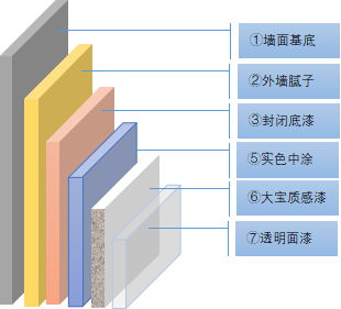 質感漆以高品質乳液,優選天然石英砂為骨料、搭配進口助劑、顏填料(色漿)、通過混合、分散工藝制備而成,本產品具有附著力強、柔韌度好、防開裂性佳、質感豐滿、防霉抗藻、耐候性佳和隔音降噪等卓越功能。可通過不同效果的骨料搭配施工,營造出獨特立體的砂壁狀質感效果。